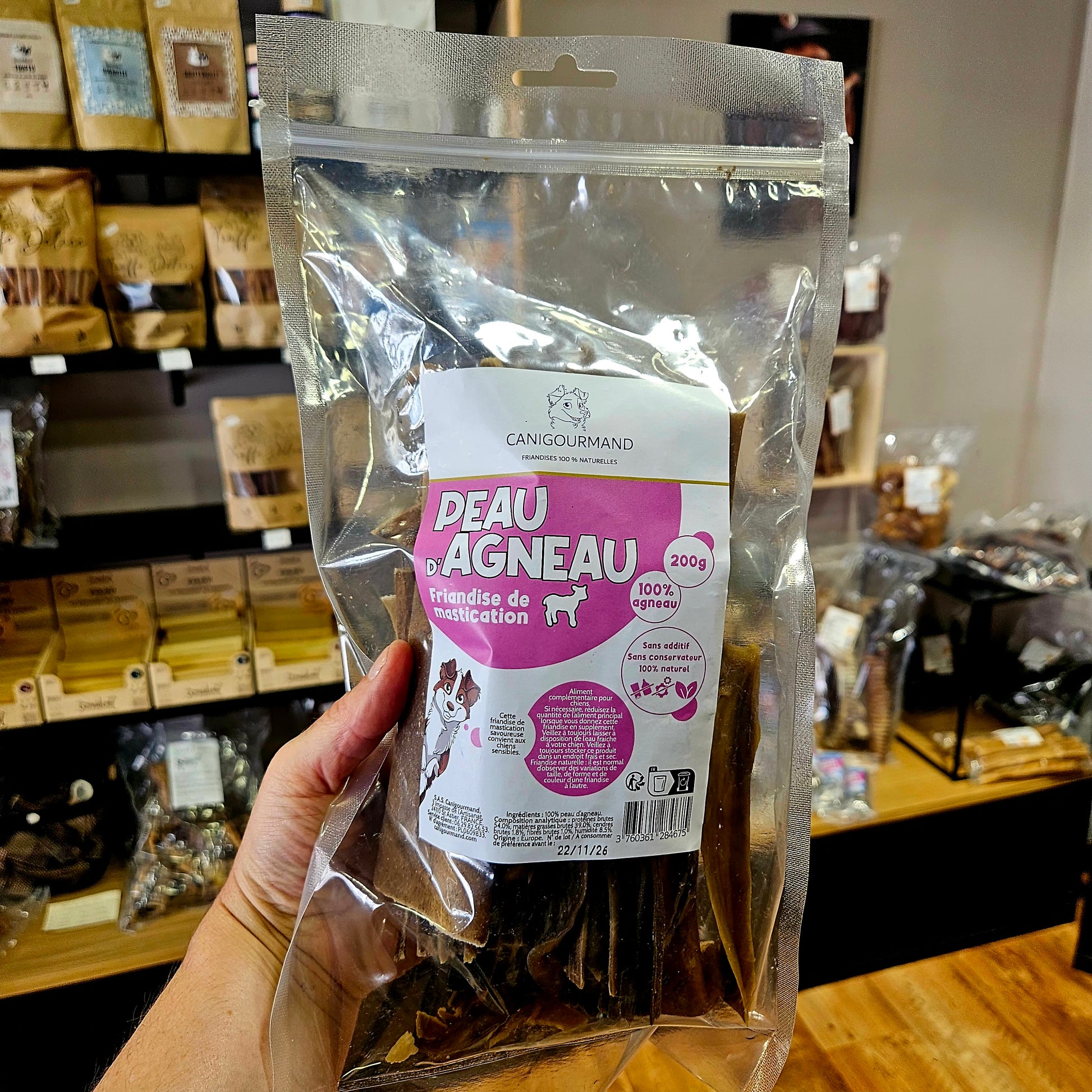La peau d’agneau est une friandise 100% naturelle, légère et hypoallergénique, idéale pour les chiots, petits chiens ou chiens souffrant d’allergies alimentaires. Plus tendre et digeste que la peau de bœuf, elle convient parfaitement aux chiens sensibles.