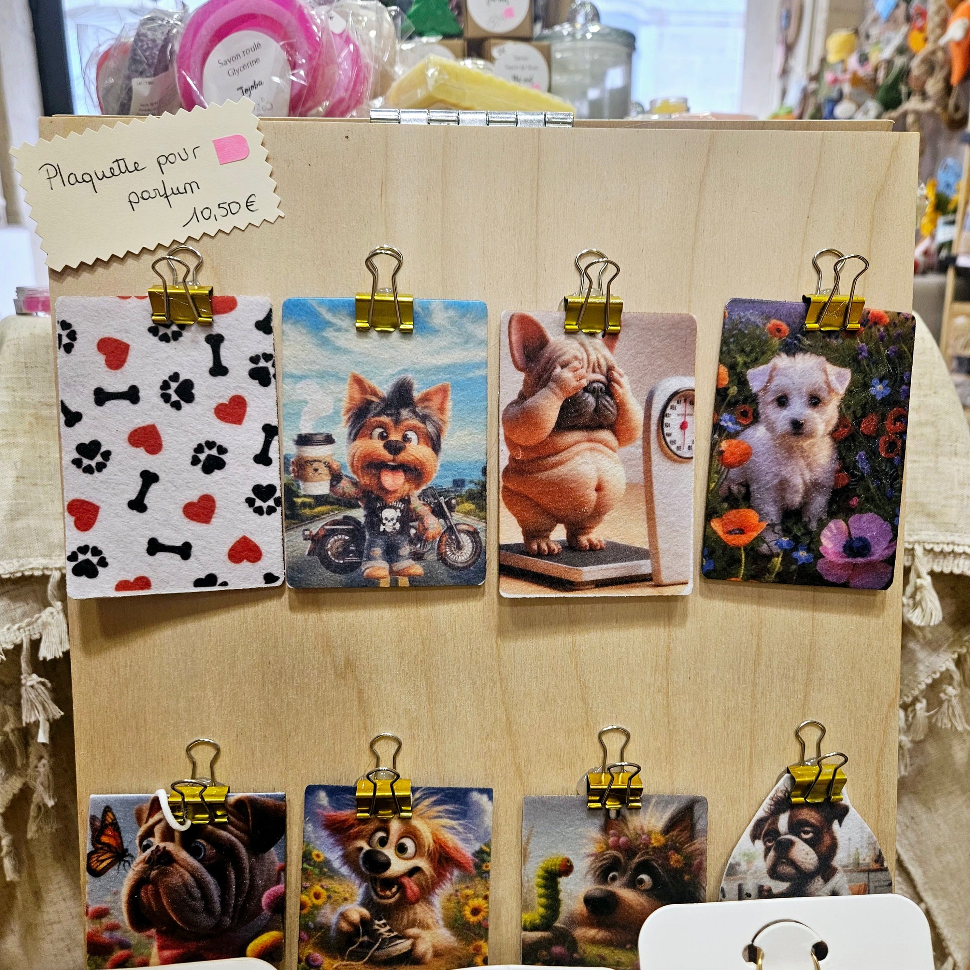Voici nos plaquettes de parfum trop fun : imprimées avec des motifs joyeux (et parfois un brin déjantés), elles n’attendent qu’une chose… que vous les parfumiez avec votre senteur préférée !