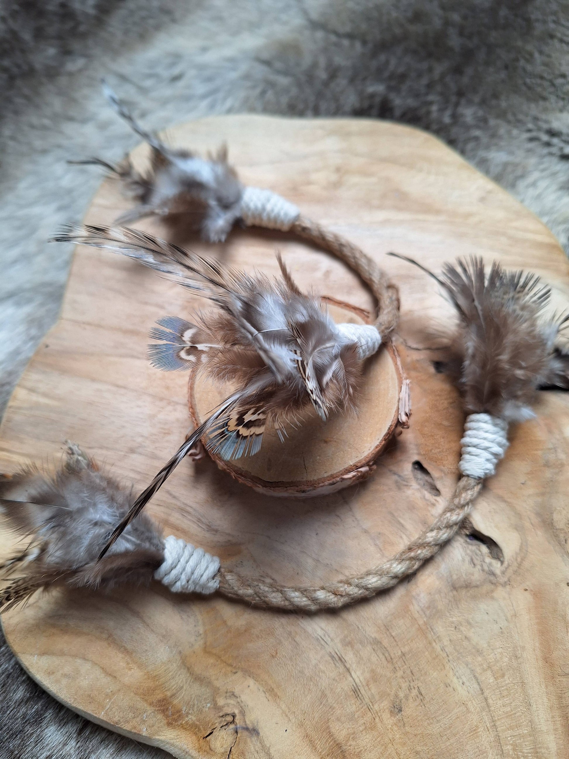 🌿 Matériaux : jute, ficelle de coton, plumes naturelles