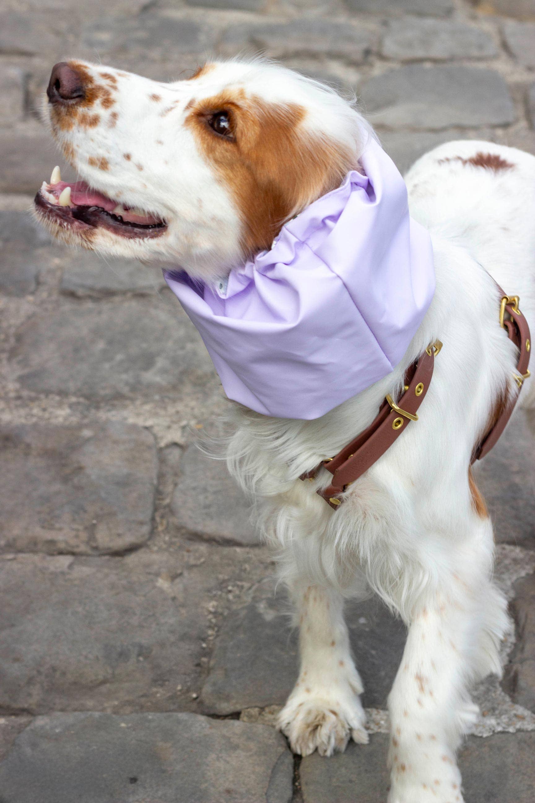 Offrez à votre toutou le plus adorable de nos snoods imperméables ✨. Réversible, le modèle Daisy est à la fois pratique et stylé : un côté ciré lilas imperméable pour les balades pluvieuses 🌧️, et un côté vichy parsemé de marguerites pour une note champêtre et pleine de fraîcheur 🌼.